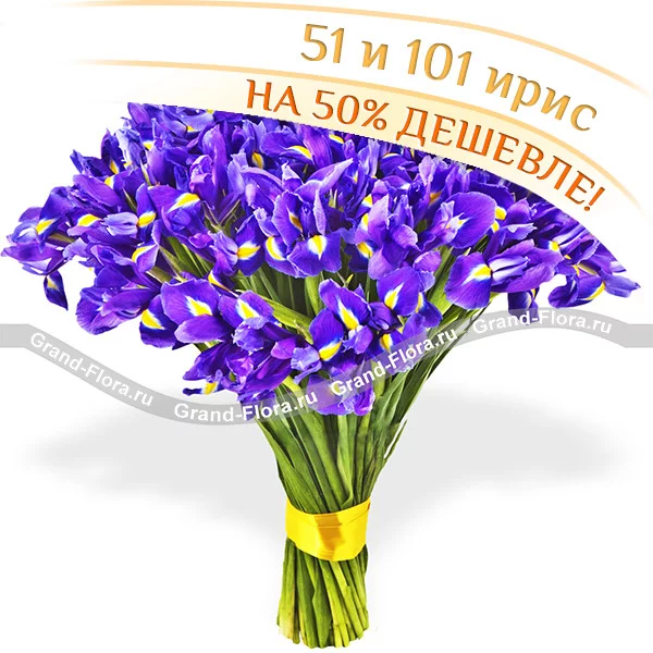 51 ирис: ирисы - 51 шт., лента желтая.